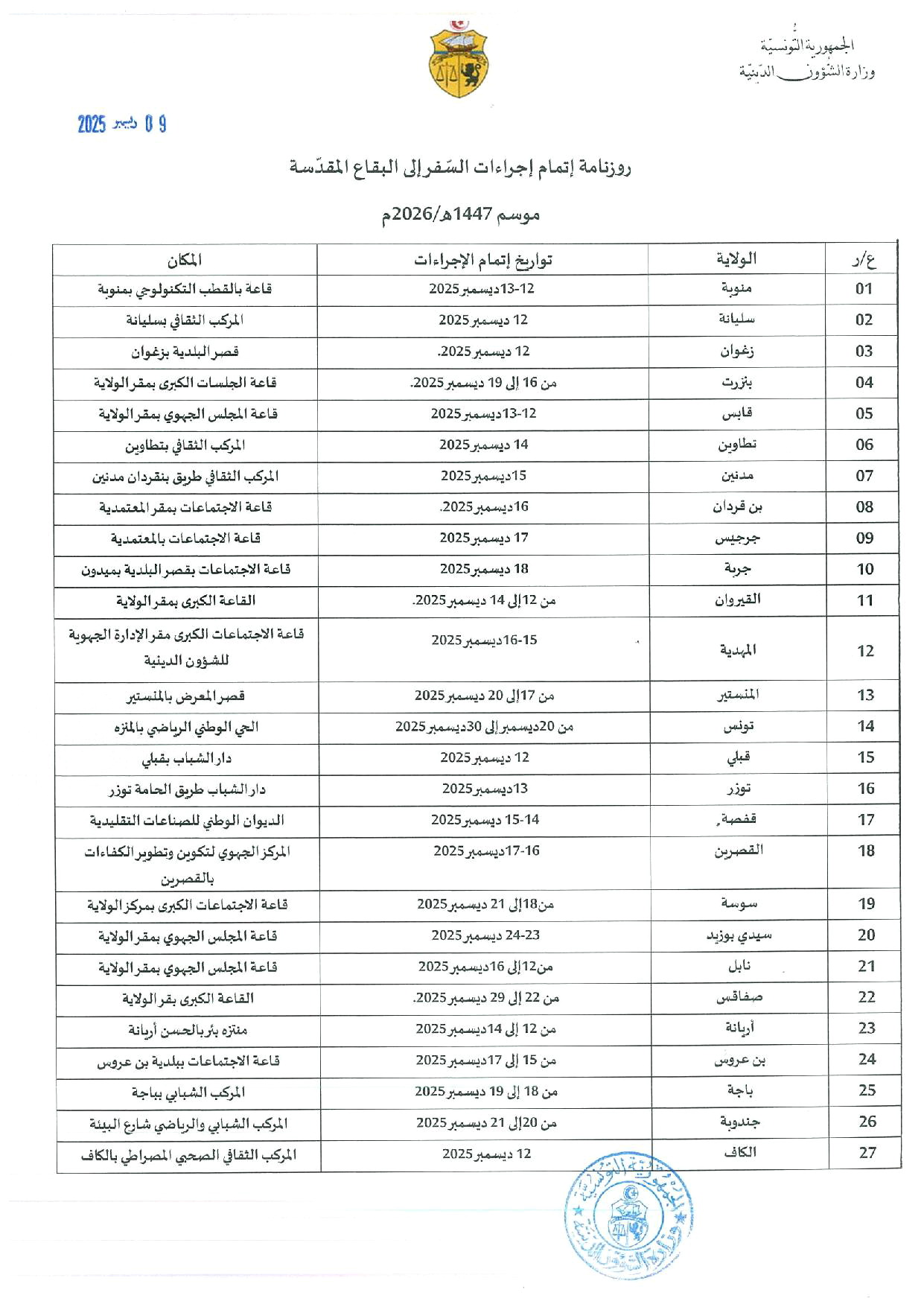 وزارة الشؤون الدينية : تسعيرة الحج لموسم 1447هـ / 2026 م حدّدت بـ 20.930.000 د